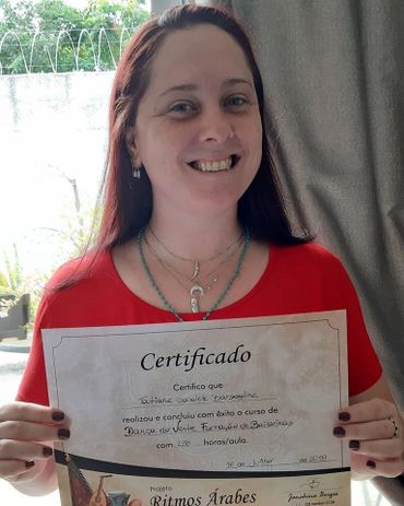 Certificado emitido por Janahina Borges® criadora do Método DVOnline© Dança do Ventre Online.