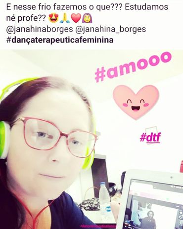Eu me vi dançando desde a primeira aula porque ela estava ali desde o princípio nos incentivando . Mesmo fazendo parte da turma online eu sentia seu carisma e alegria como se ela estivesse aqui, na sala de minha casa.