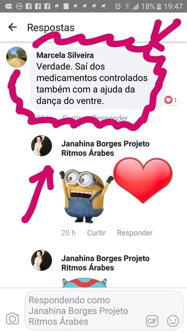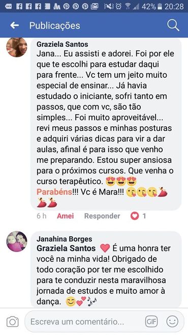 "Falar sobre a experiência que tive em fazer parte das alunas da mestra Janahína Borges me enche de alegria. Eu me vi dançando desde a primeira aula porque ela estava ali desde o princípio nos incentivando . Mesmo fazendo parte da turma online eu sentia seu carisma e alegria como se ela estivesse aqui, na sala de minha casa. Eu pude aprender passos que eu via e era ensinado com bastante dificuldade, e ela desvendou todo mistério com seu método simples e didático. Deixando seu ensino ainda mais prazeroso sem perder a qualidade. Estudar com ela é simplesmente maravilhoso, levarei seus ensinamentos para toda vida!"
